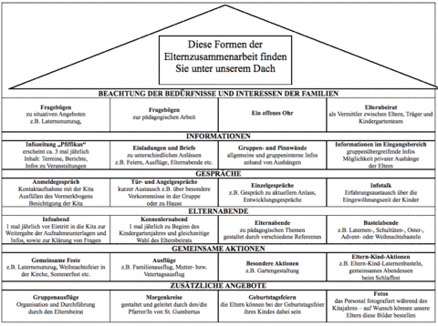 Eltern sind uns als Partner bei der Erziehung der Kinder sehr wichtig. Vater und Mutter sind Experten im Familienalltag, Erzieher/Innen sind Experten für Bildung, Erziehung und Betreuung von Kindern mit unterschiedlichsten Bedürfnissen in einer großen Gruppe.